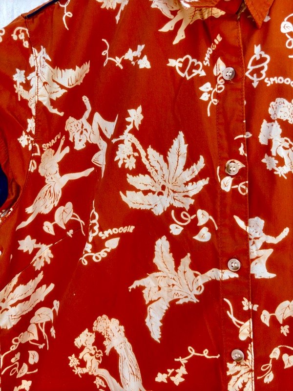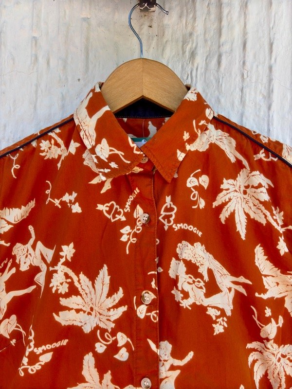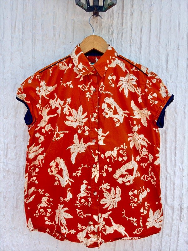 Camisa de algodón, excelente calidad, mangas cortas, estampa tipo batik. (Importado) Talle: L