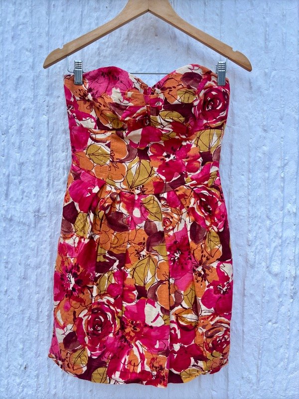 Vestido strapless, corte corazón en el pecho. (Importado) Talle S