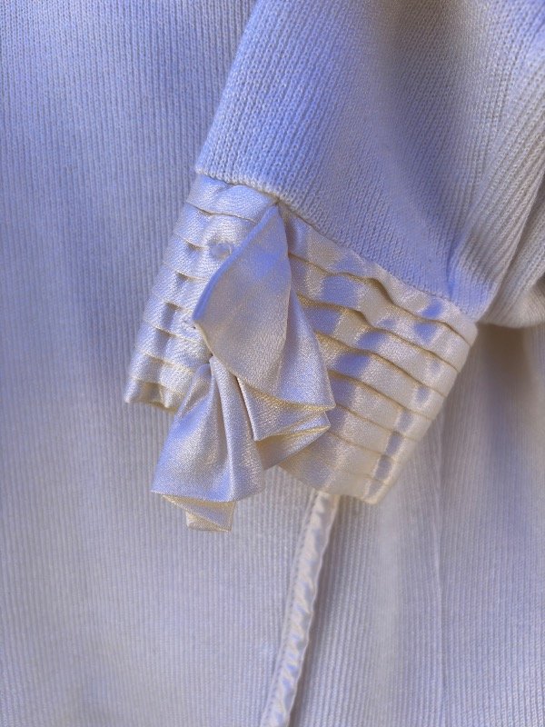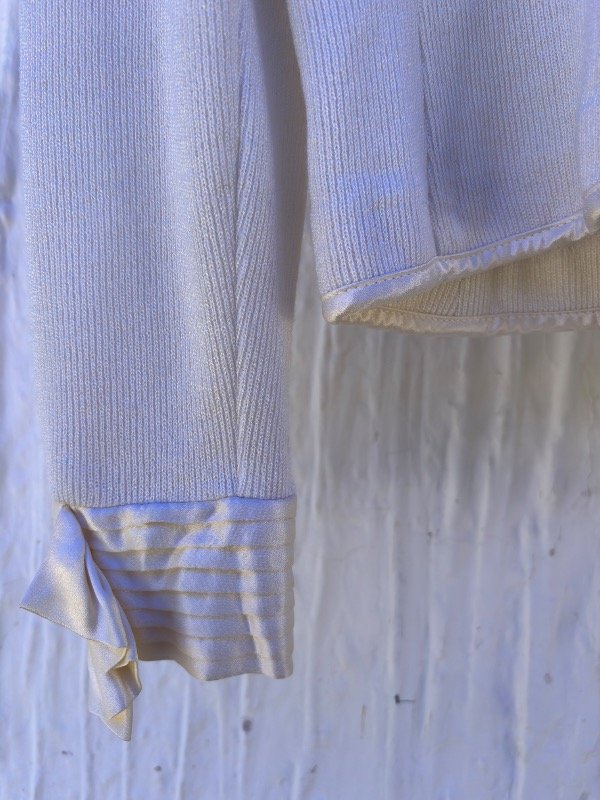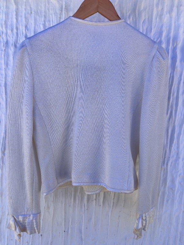 Saco de hilo con mangas princesa, cruzado en la parte delantera y detalles en las mangas. Talle: M